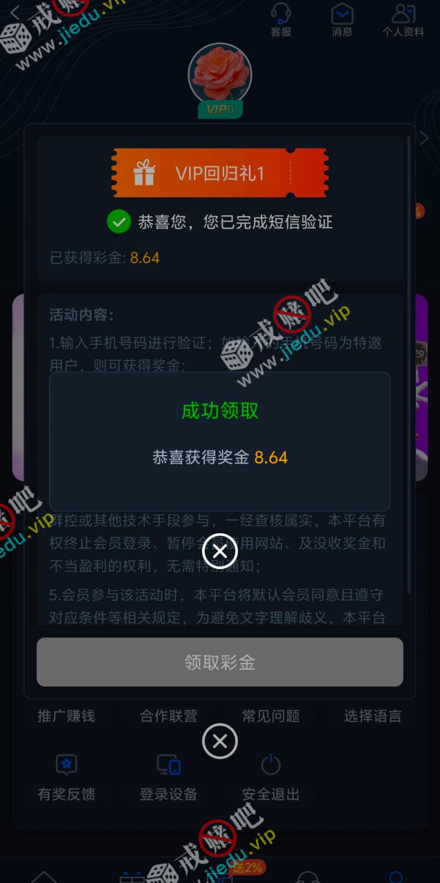 下载app登录,下载登录后点击我的,然后再点画圈着的活动图,输入手机号,我领了8 元,有号的都去看一下!