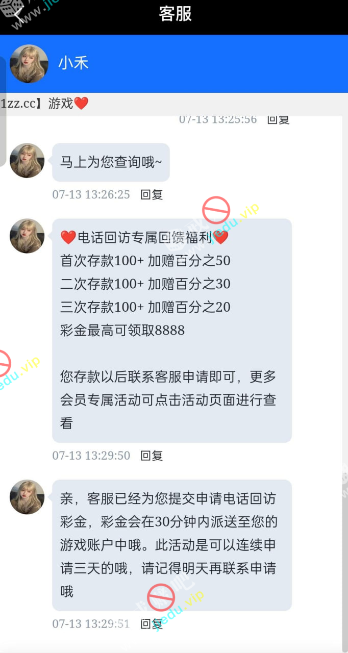 有号的各位赌神,找客服申请回访彩金,连送三天,我也是碰,没接到电话。