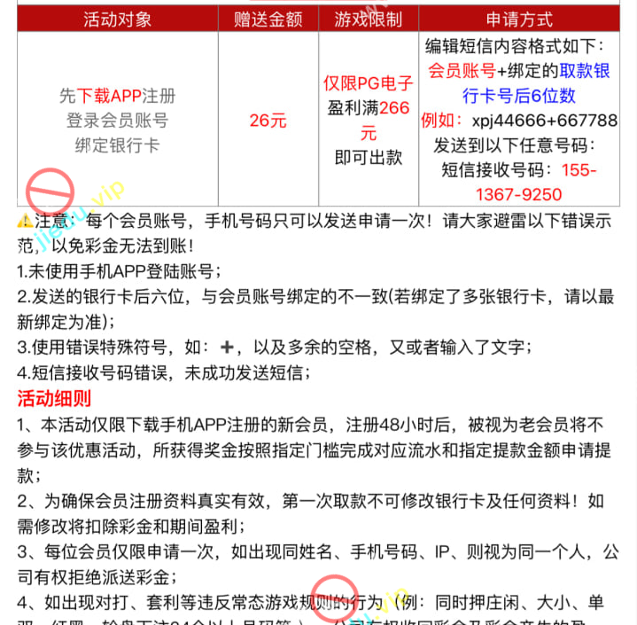 只有一次机会,短信内容不要发错,发了没到账就联系客服碰瓷。