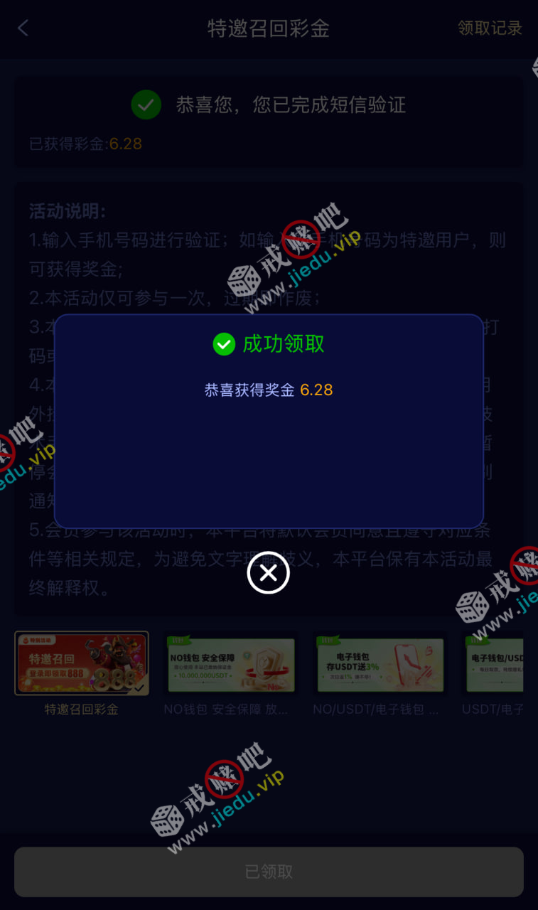 在活动里面自助领取,,输入手机号就领了,赌神上!