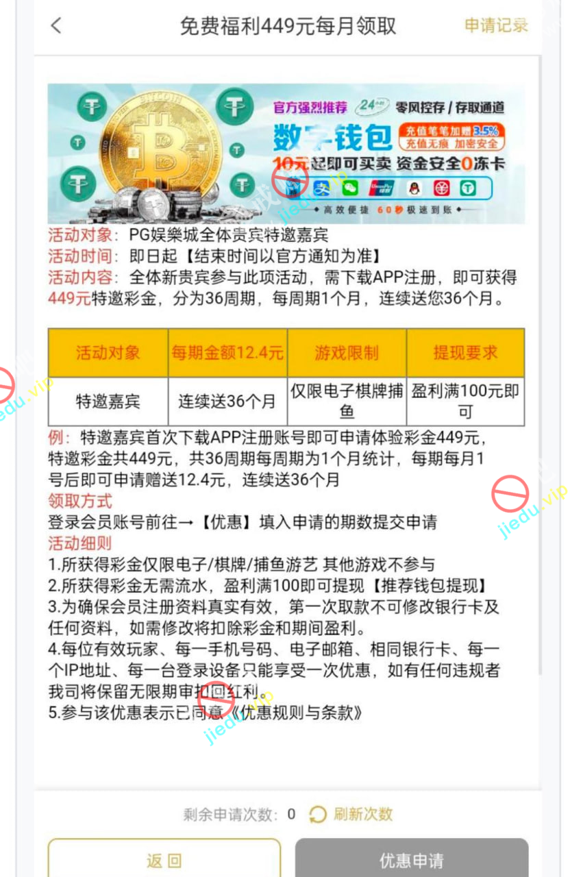 注册绑定手机号银行卡钱包,然后点优惠申请特邀嘉宾碰瓷1期,成功率极高,成功之后可领取36个月。