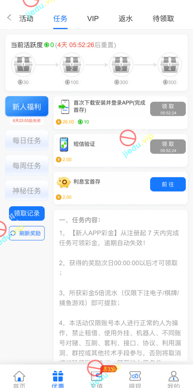 任务领取要6个小时后才可以领,需要的哥们去碰碰看。