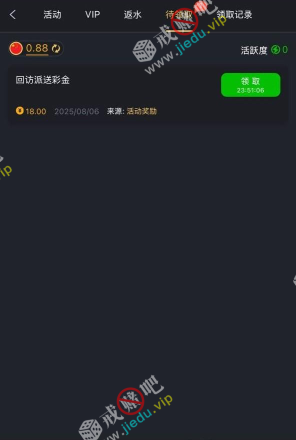 老用户有号登录查看有没有回访18彩金,有就有没有没有吧。