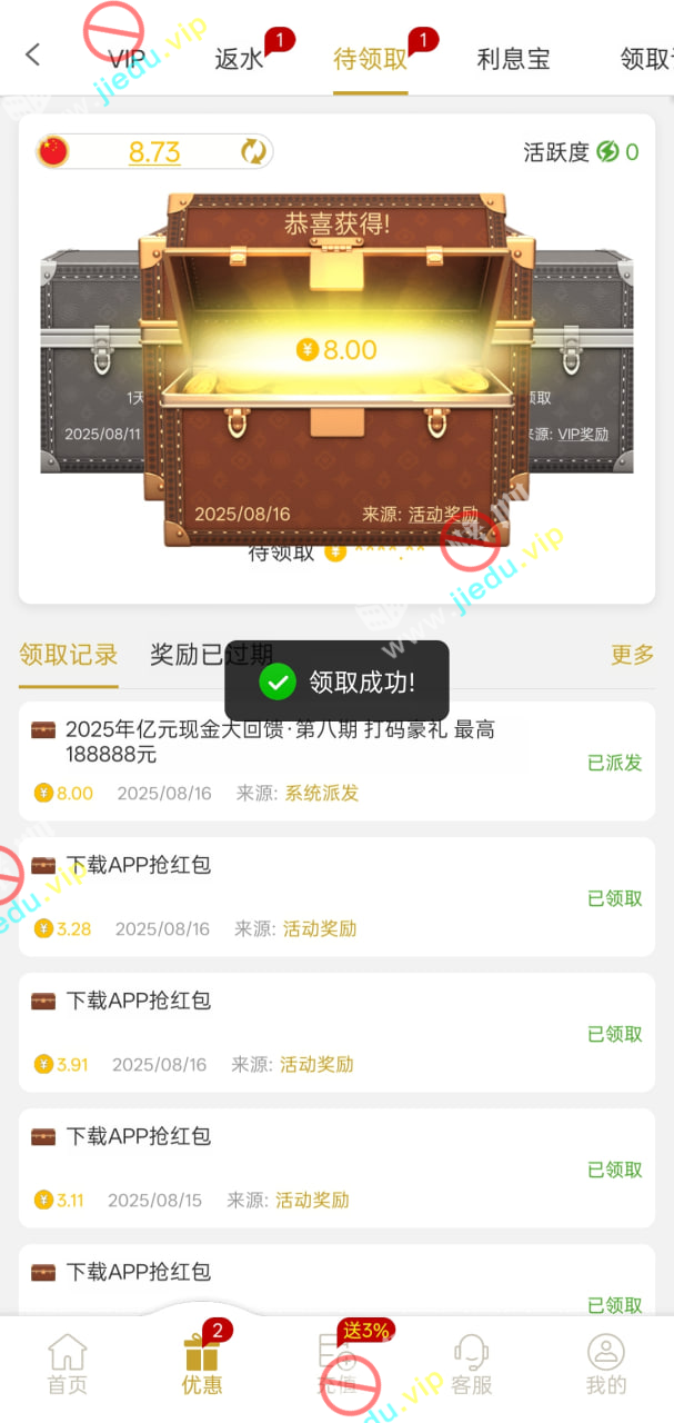 到账情况: 白嫖即可(勿充值)