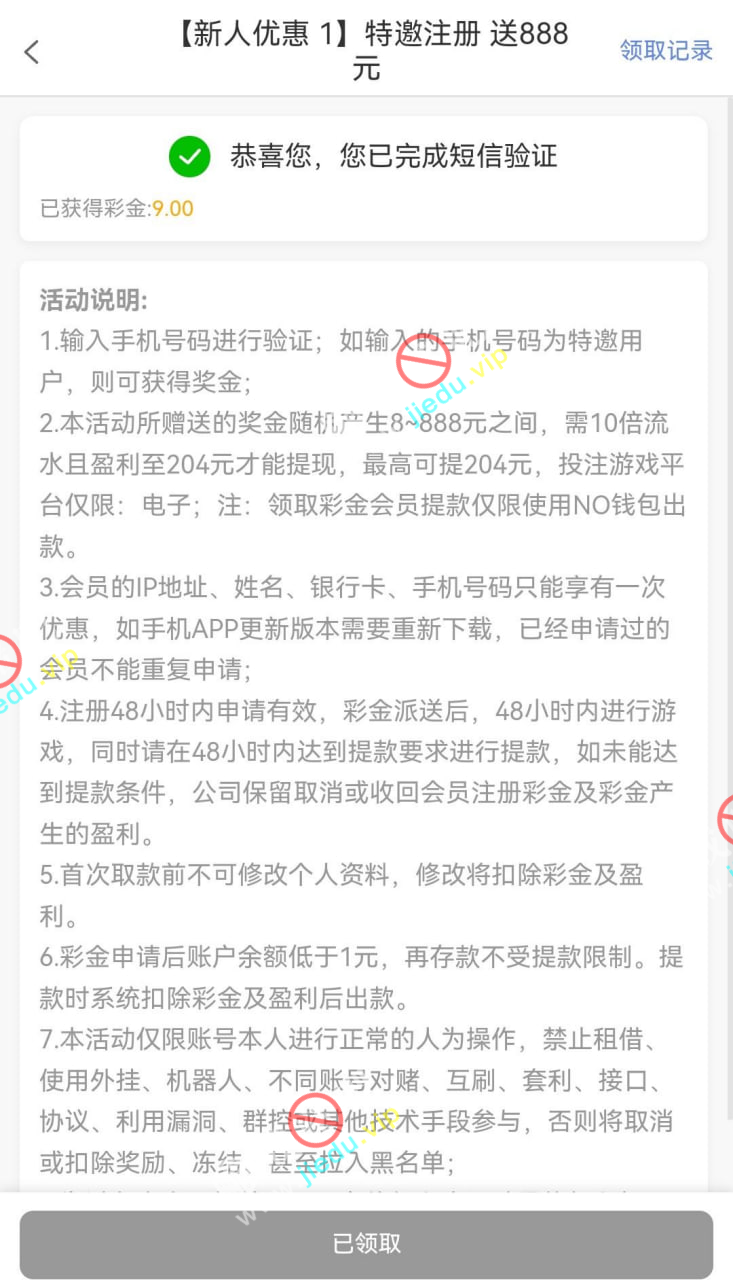 到账情况: 白嫖即可(勿充值)
