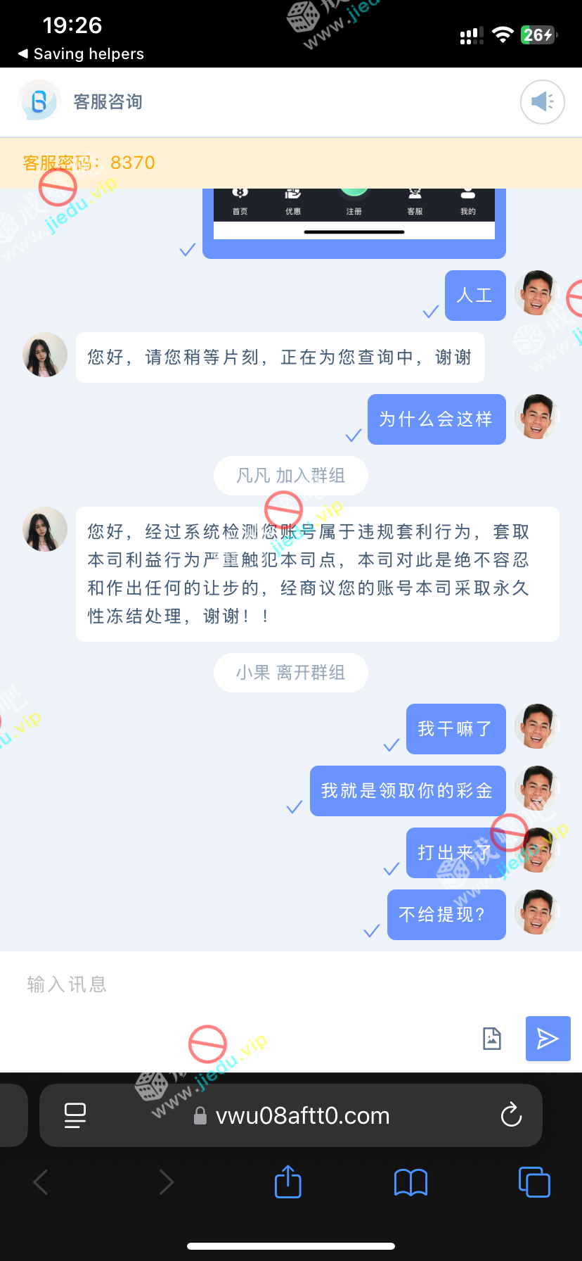 大家避雷这家8娱乐,我领取彩金好不容易打上500,提款的时候不给我提款还说套利直接冻结我的账号