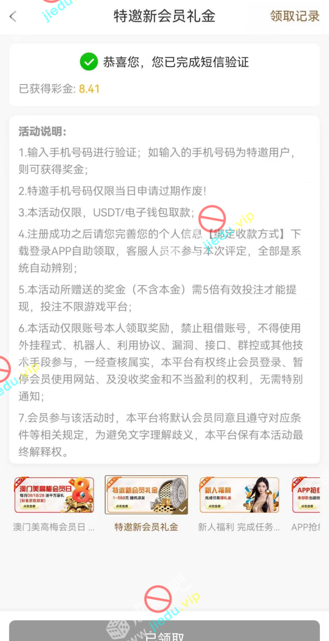 到账情况: 白嫖即可(勿充值)