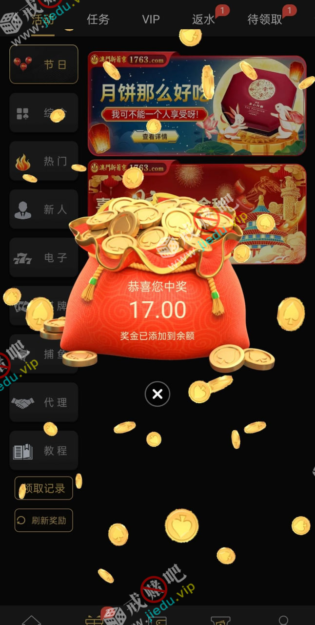 经常玩的台子,刚才登录领了17块的,下载APP神秘礼金,有注册过的兄弟们可以去看看。