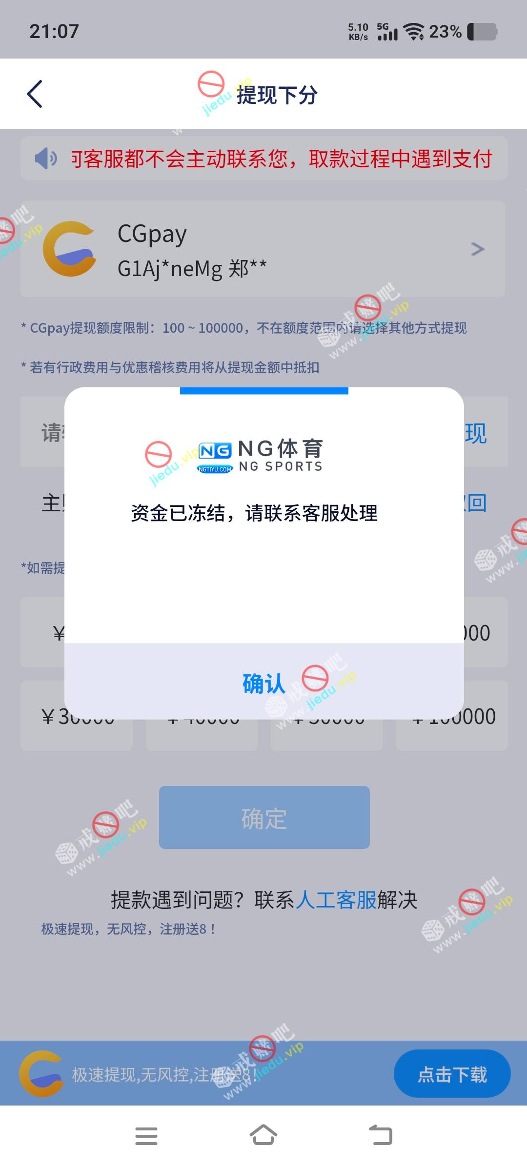 参加新人100+100,我也没违规,只玩电子,好不容易打上来了,提现秒冻结,避雷NG体育,大黑台。