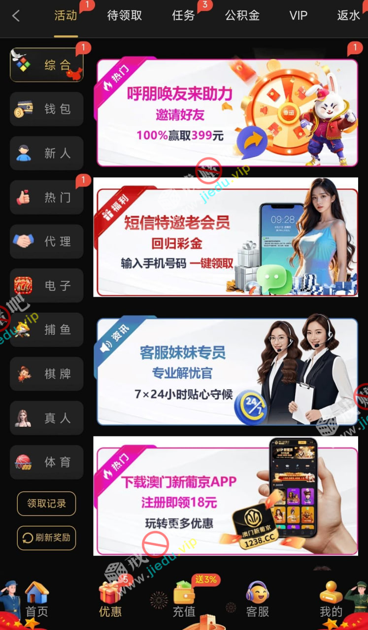 现在新出的短信回归彩金,之前领过特邀自助9 块的宝们,估计这个也会有吧,去碰碰下!