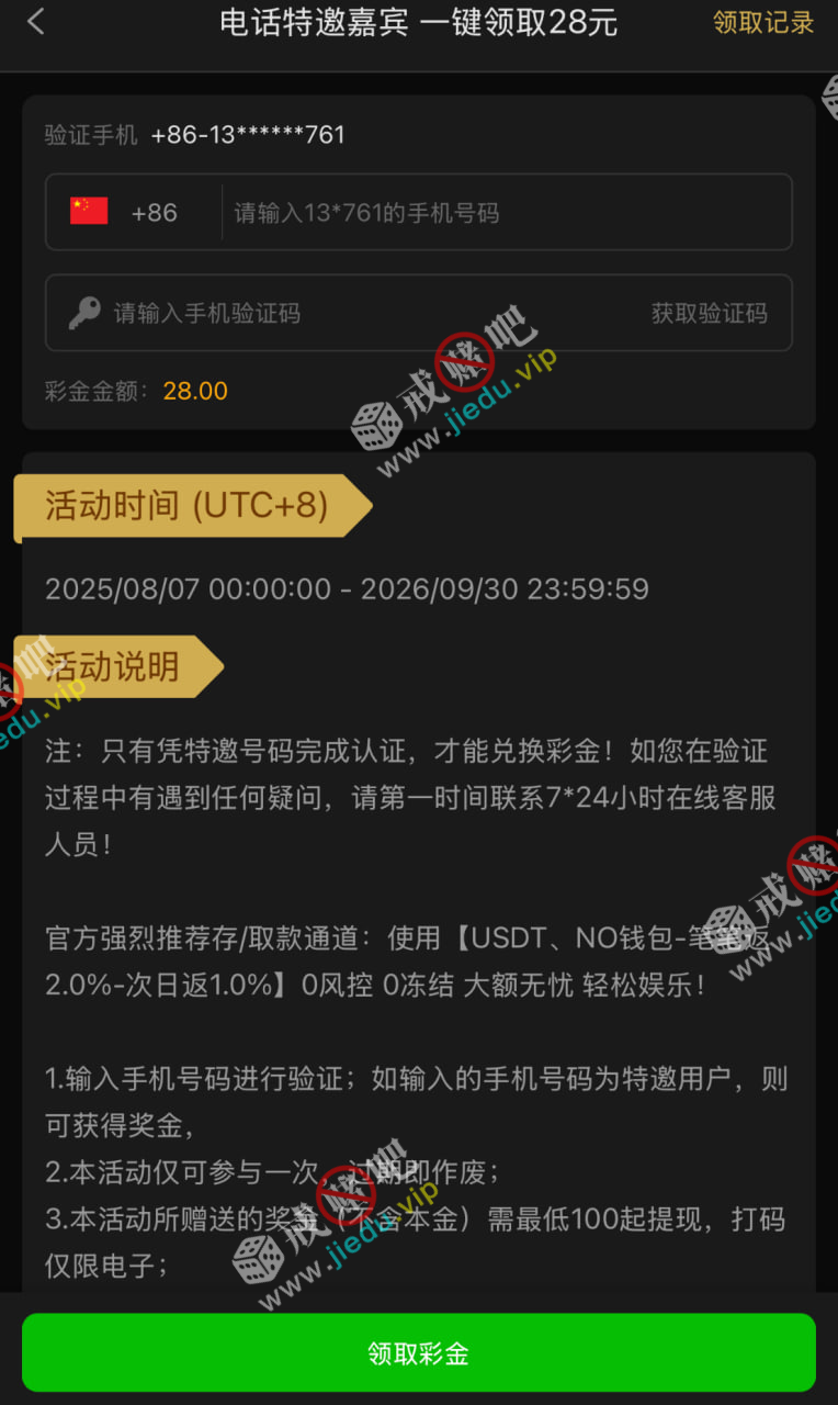 到账情况: 白嫖即可(勿充值)