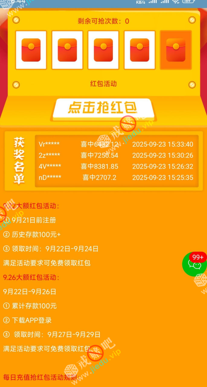 9月21日前注册,历史存款100元+,领取时间:9月22日-9月24日,满足活动要求可免费领取红包!