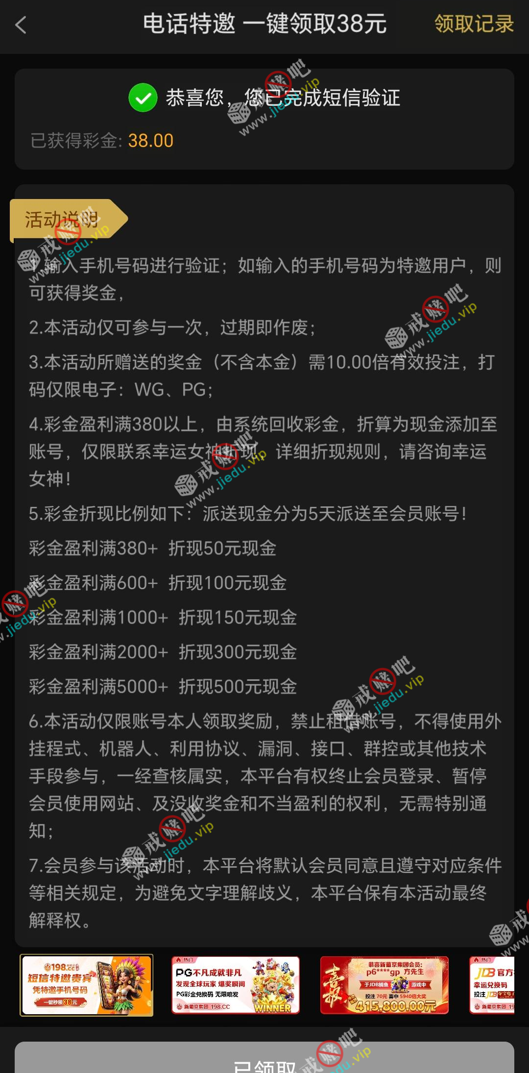 到账情况: 白嫖即可(勿充值)
