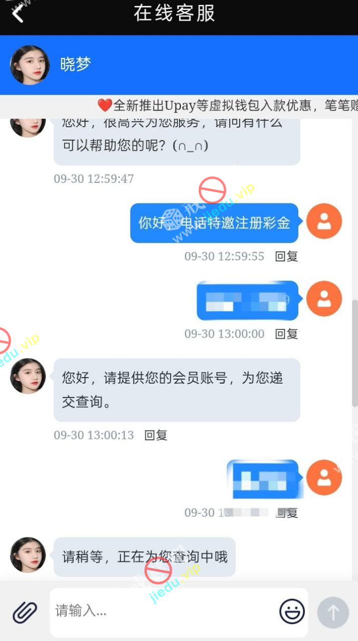 我接到电话的,说注册连送三天免费彩金,叫找在线客服说特邀注册彩金 。