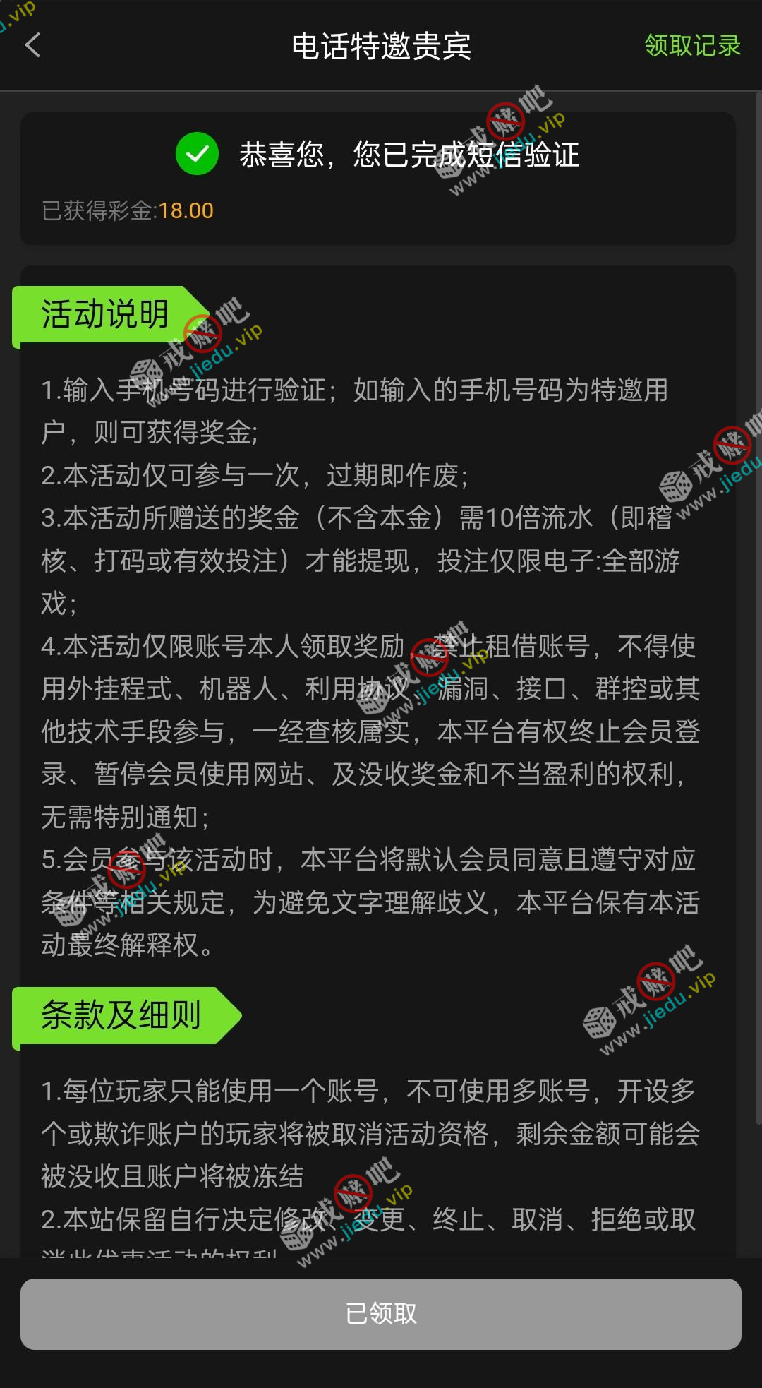 到账情况: 白嫖即可(勿充值)