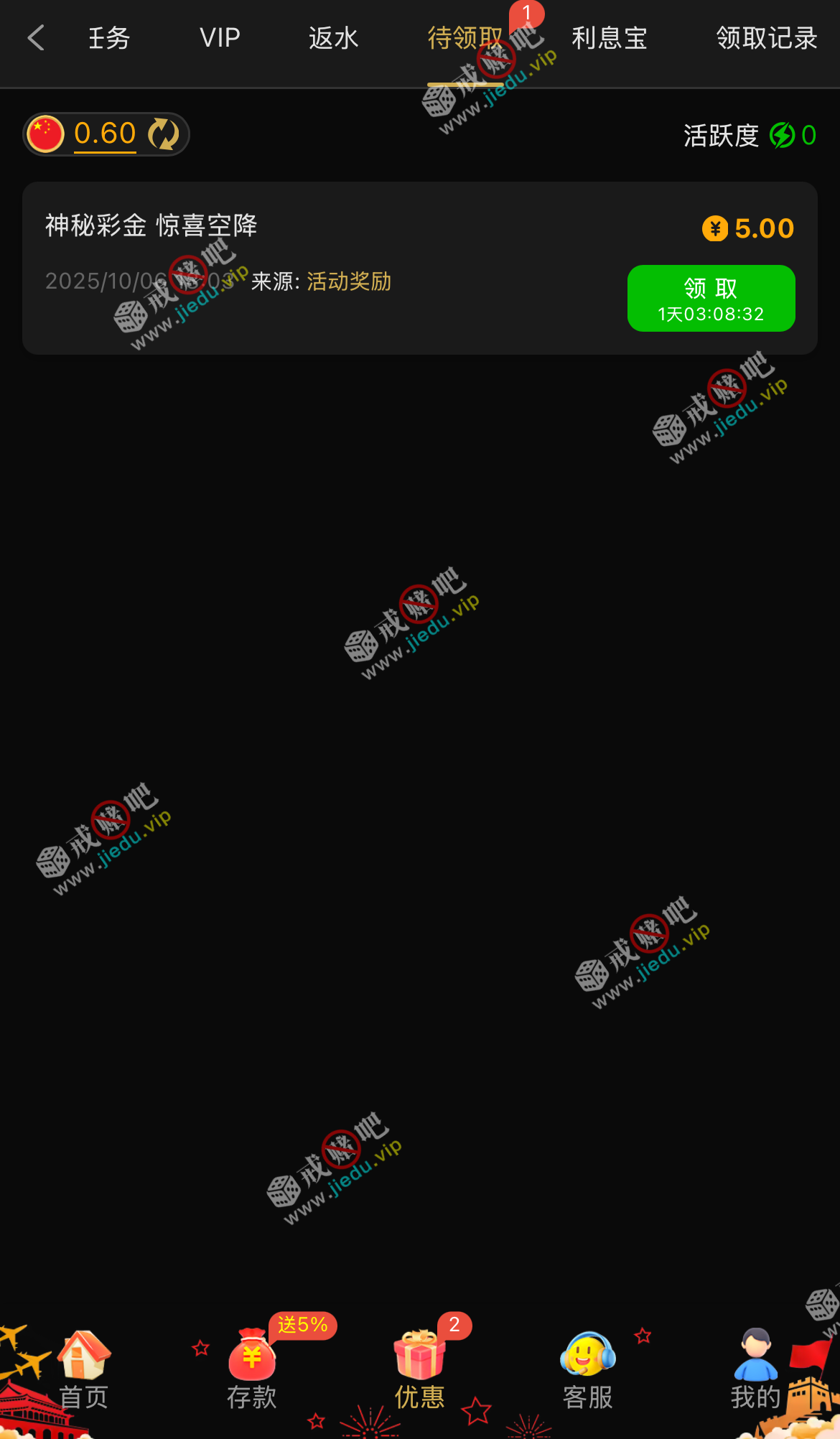 赌神项目,有号去看看有没有神秘彩金,我领到了 5 块。