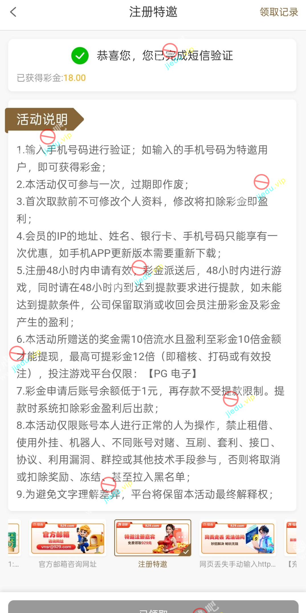 接到电话新平台威尼斯人下载注册送18-929体验金,验证手机短信收到18元.第一时间发出来分享。