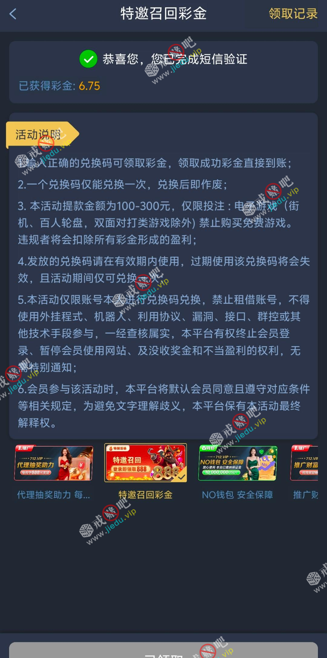 接到人机电话,领回归彩金,大家可以去看看。