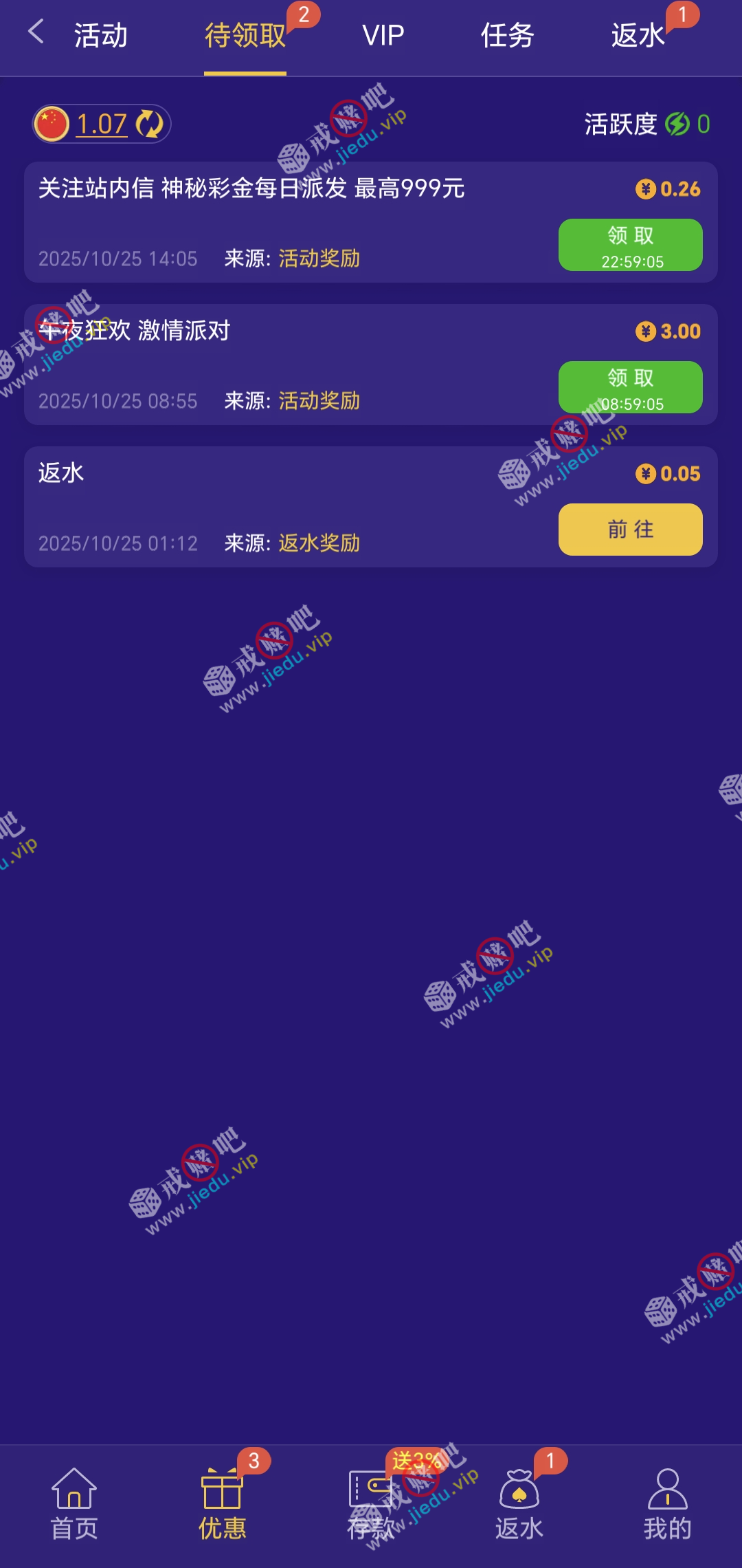 有号的去看看一下,站内信彩金。