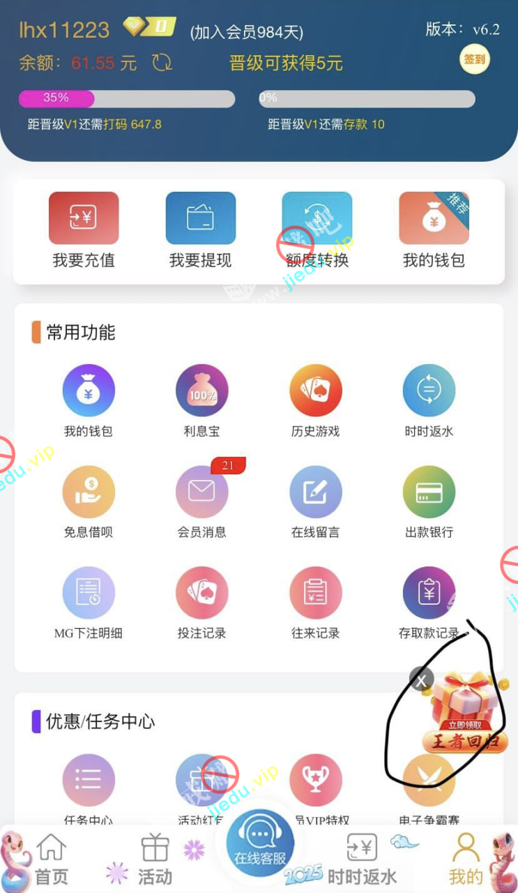 刚刚接了个电话,有号的自己去看看有没有,我一分没充过,领了58,