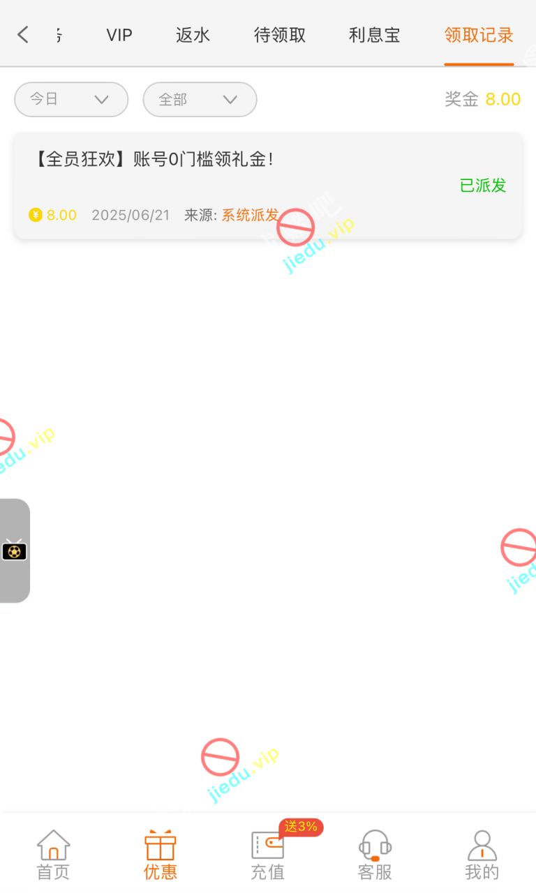 之前注册的账号我没有充值过上号就看到有8彩金有号或者充值过的可以去看看。