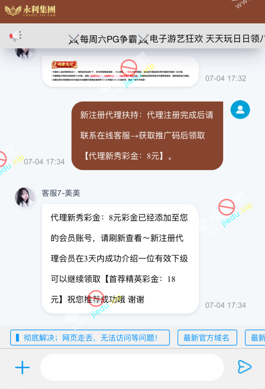 册一个代理账号然后联系在线客服领8块代理新秀彩金 不需要充值不需要拉人 彩金一倍水10块钱就能提现