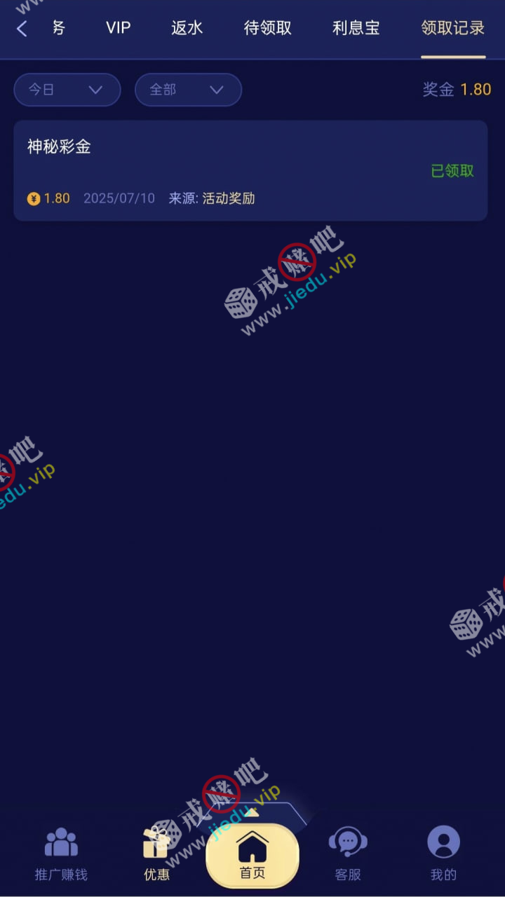 神秘彩金领到了几块,几块也是都是机会 赌神自便 ,有号就记得上号看看