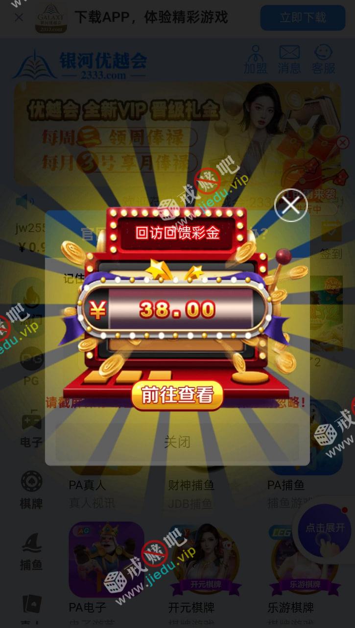 各位老用户登录有回访彩金,充值过的去看看刚刚领取到38