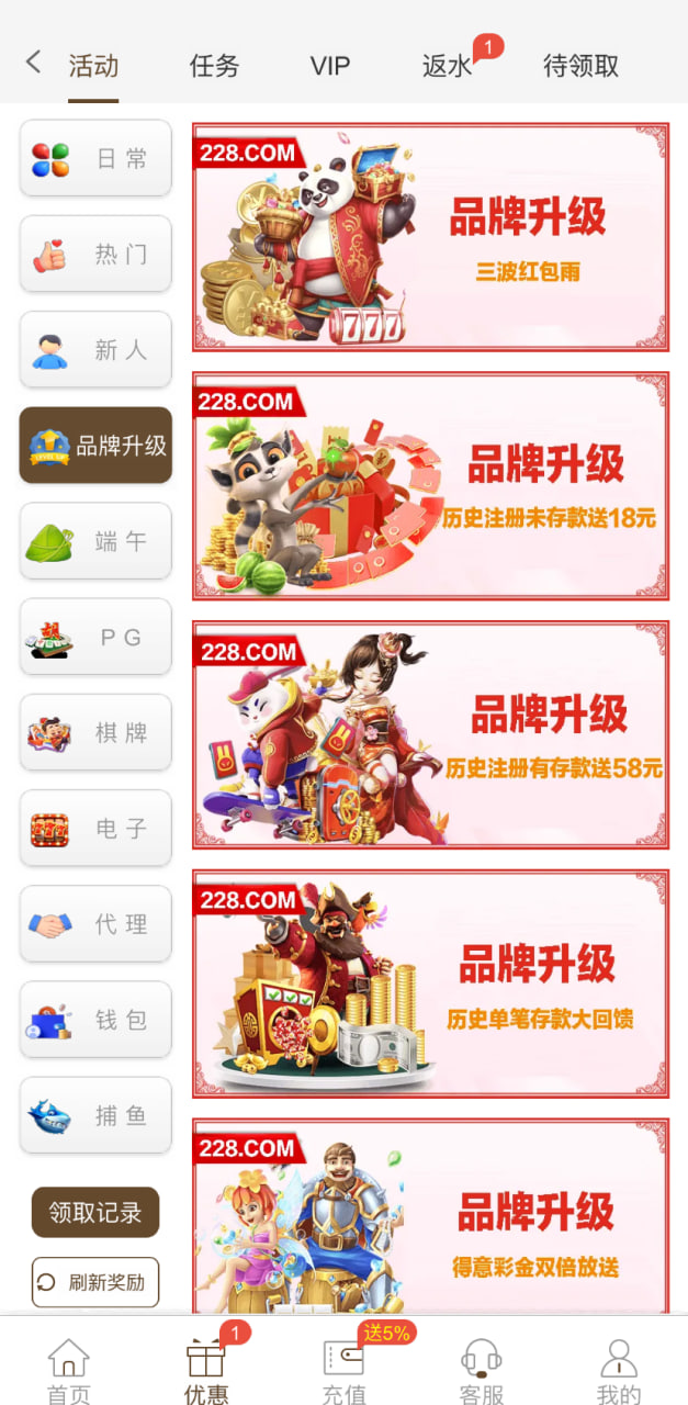 6.1号之前注册未充值的送18 充值5次大于51的送58 还有单笔充值彩金  有号的兄弟们上号自己看活动 6.3号下午15.00和16.00彩金优惠领取即可