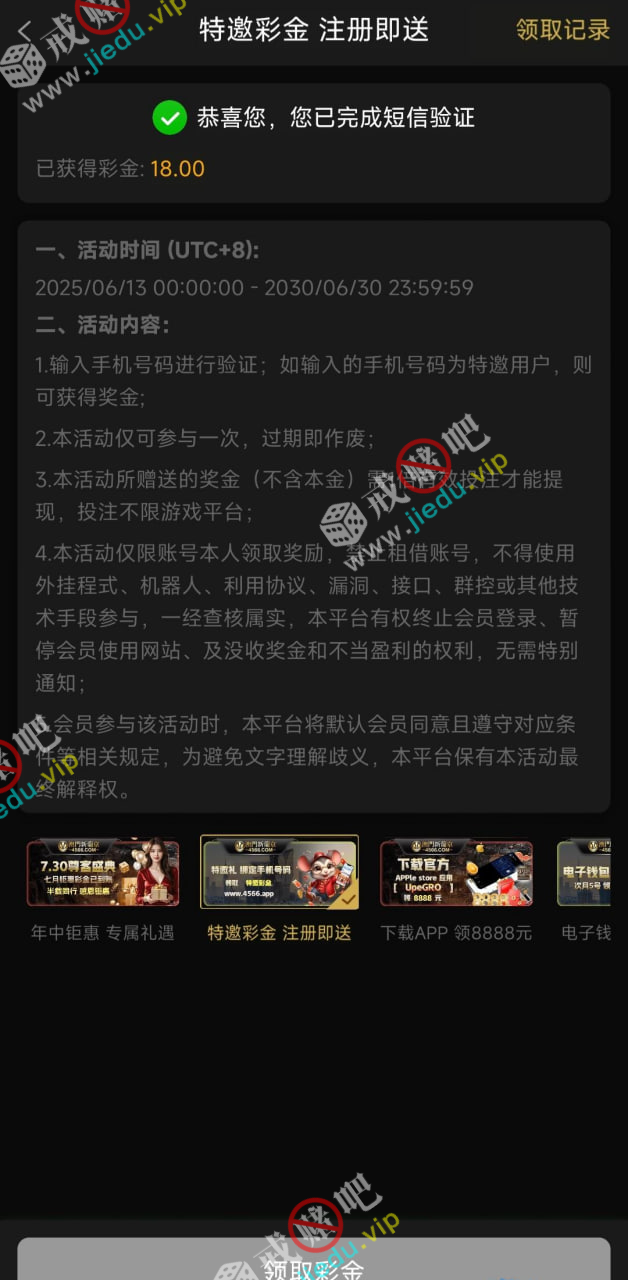 用手机号登陆领取,之前注册过的可以用手机号登录上去看看,领取彩金需要下载APP,也可以看看有没有漏接电话的,彩金无限制