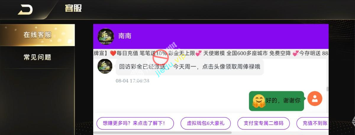 送38,找客服直接说是8月份回访彩金就好,基本每人都有。