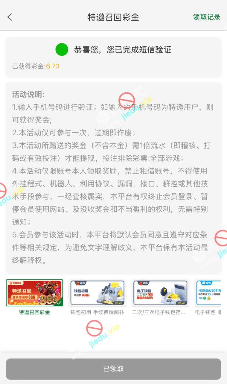 到账情况: 白嫖即可(勿充值)