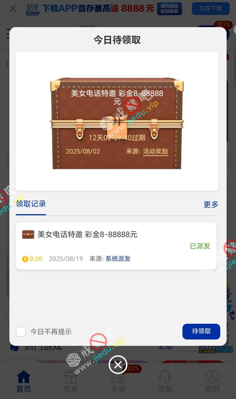 没给我打电话,我是登录就有了,不知道哥们有没有,有号就随便看看下吧,没有就别充,需要的是白嫖!我都不充。