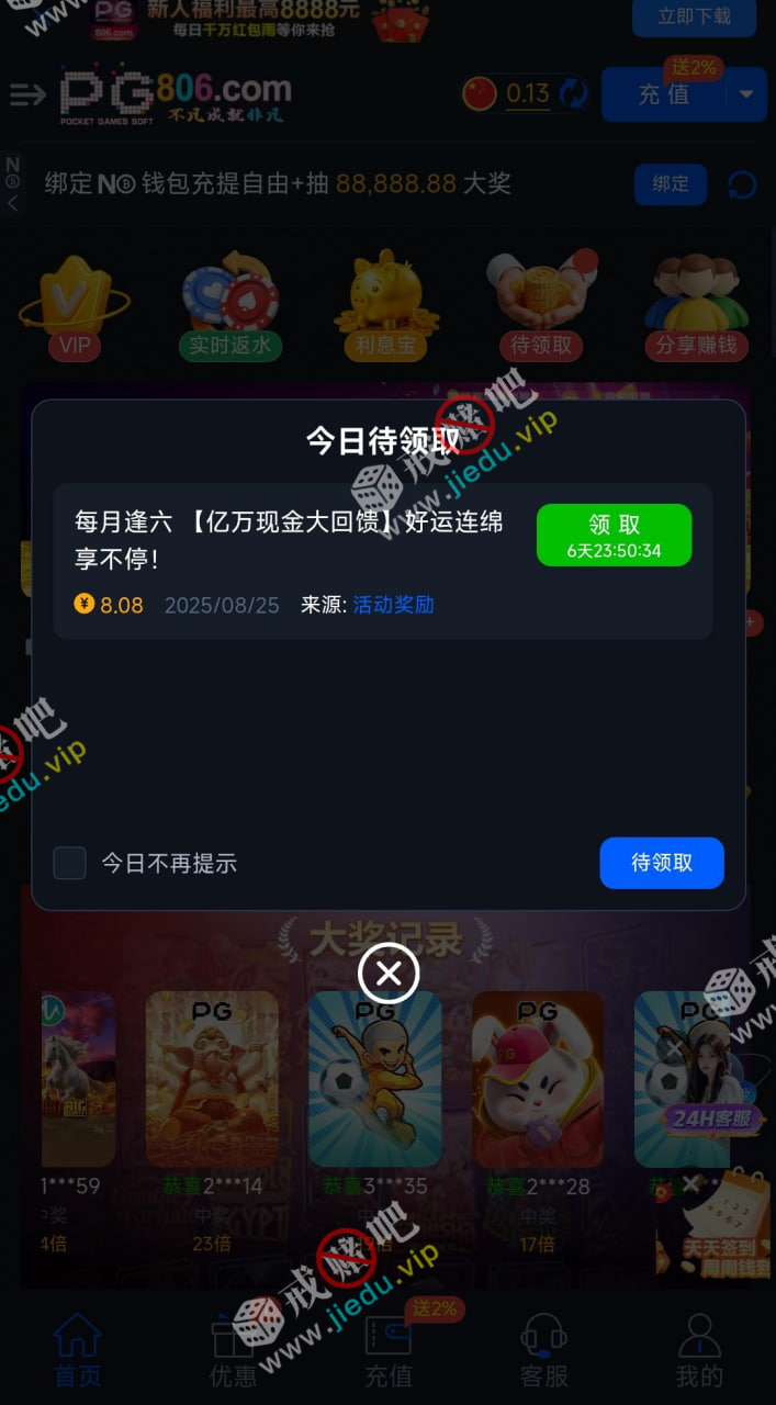 昨天登录就领到了 8 块 ,充值过的哥们去看看,具体有多少自己看看吧。