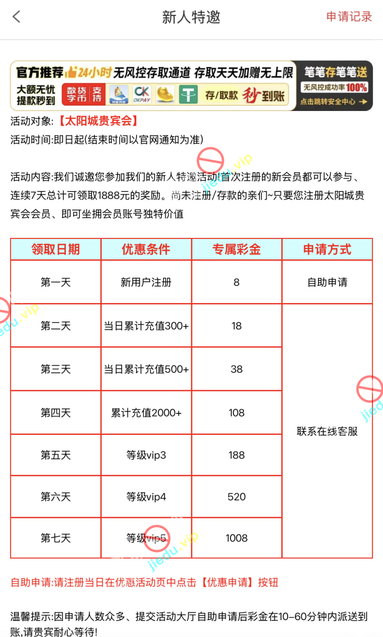 注册绑卡自助申请送8,我没有接到特邀也送了,三倍流水就可以提,不要充值,白嫖申请领取即可。