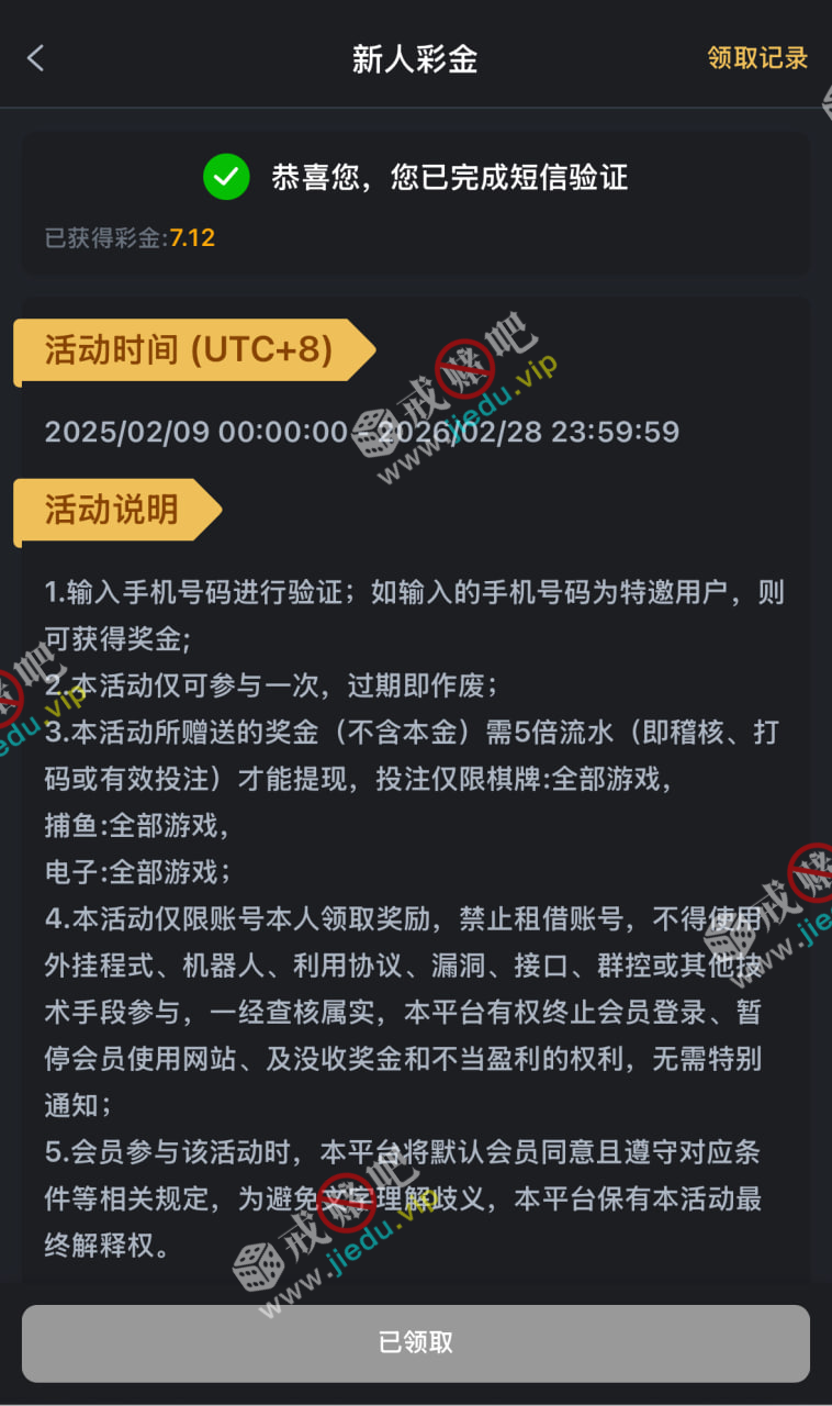 到账情况: 白嫖即可(勿充值)