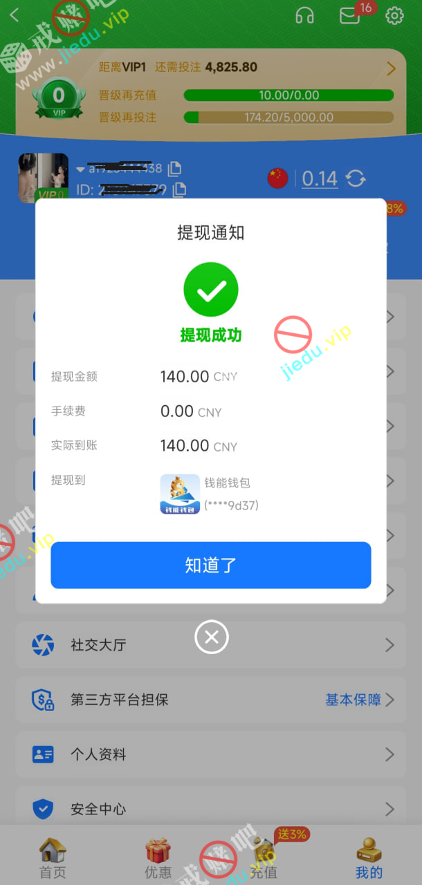 聊登录就领到了 8块彩金,达到了 70 再吃到了 140,已出款到账了,只充过 10 块的。
