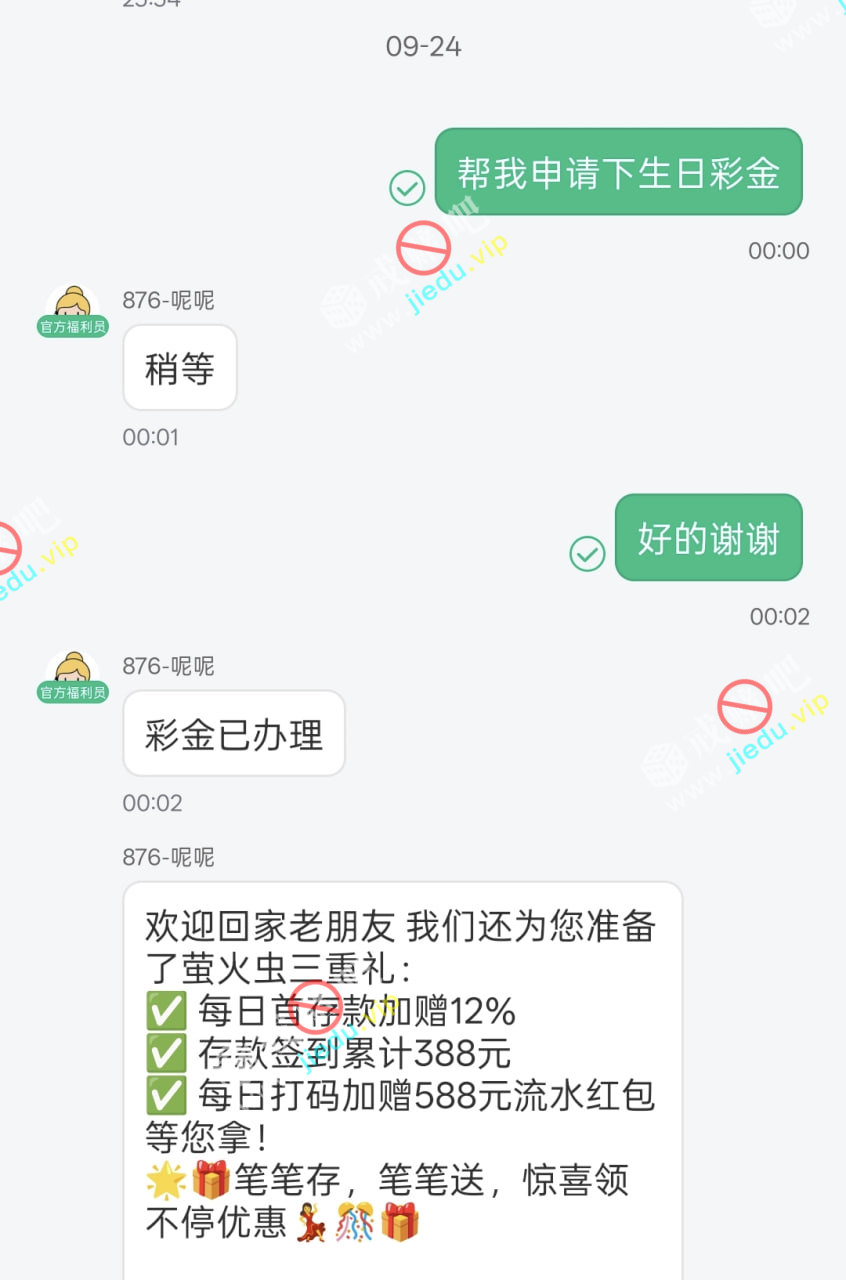老用户先联系客服注册日是基于几号,到时间去申请生日彩金送的我109。