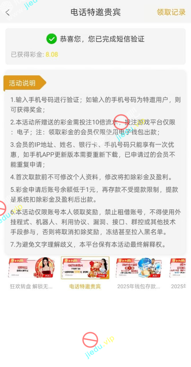 到账情况: 白嫖即可(勿充值)