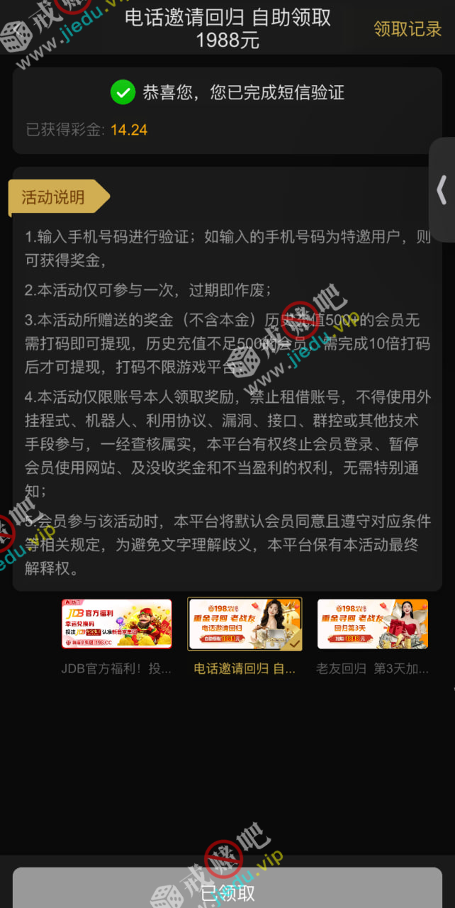到账情况: 白嫖即可(勿充值)