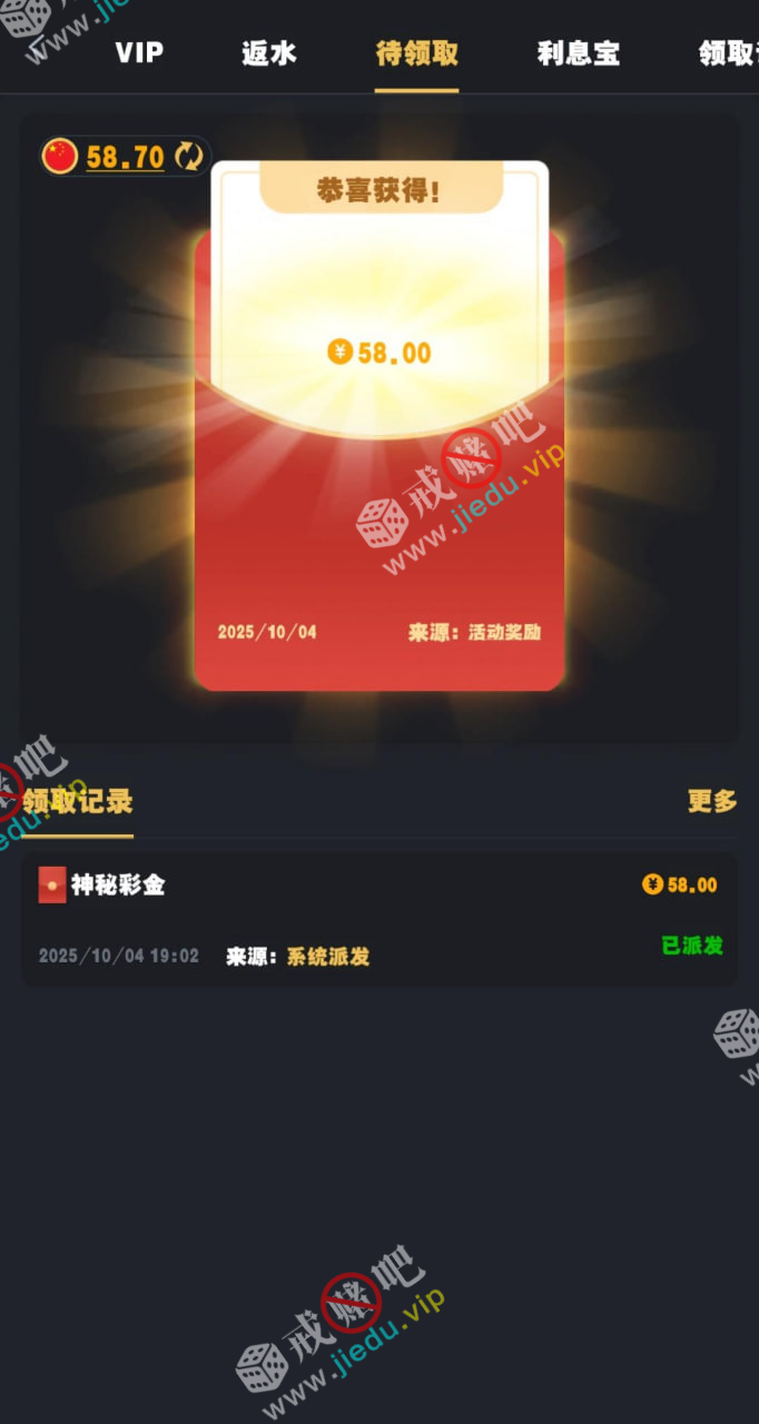 跟客服要的时候不要说神秘彩金,那样他会说让你等着自己到账,你就说电话回访彩金,他就会给你送了,我提了300,去碰碰没成功就撒。