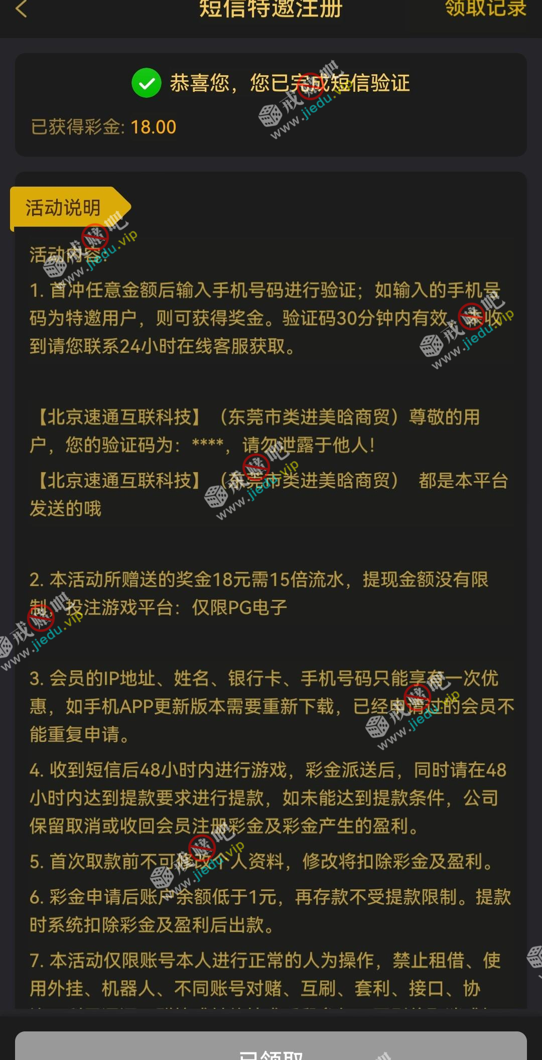 到账情况: 白嫖即可(勿充值)