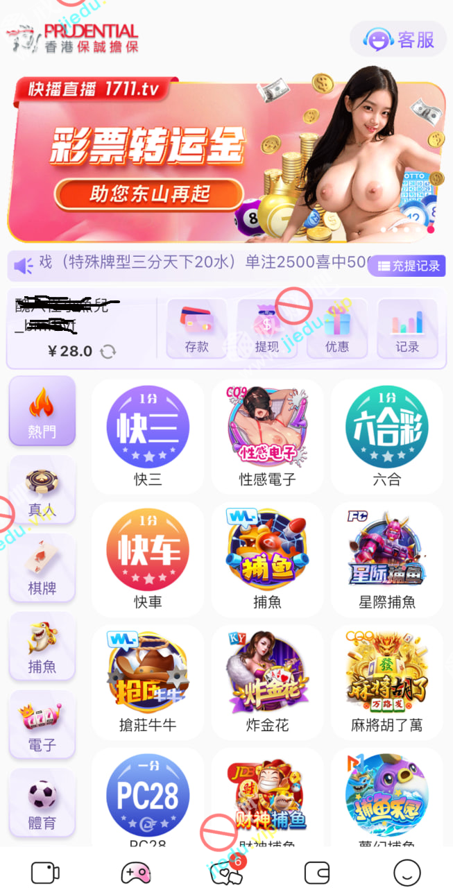 快播直播,接到电话说回访彩金,送了28。