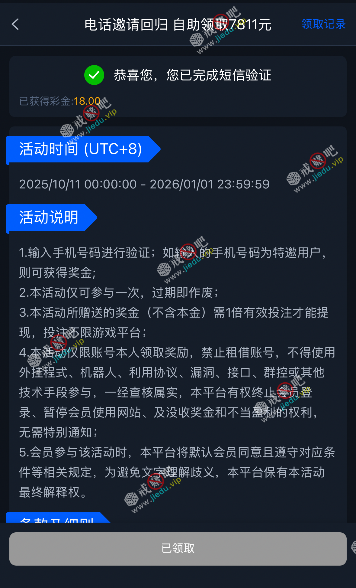 到账情况: 白嫖即可(勿充值)