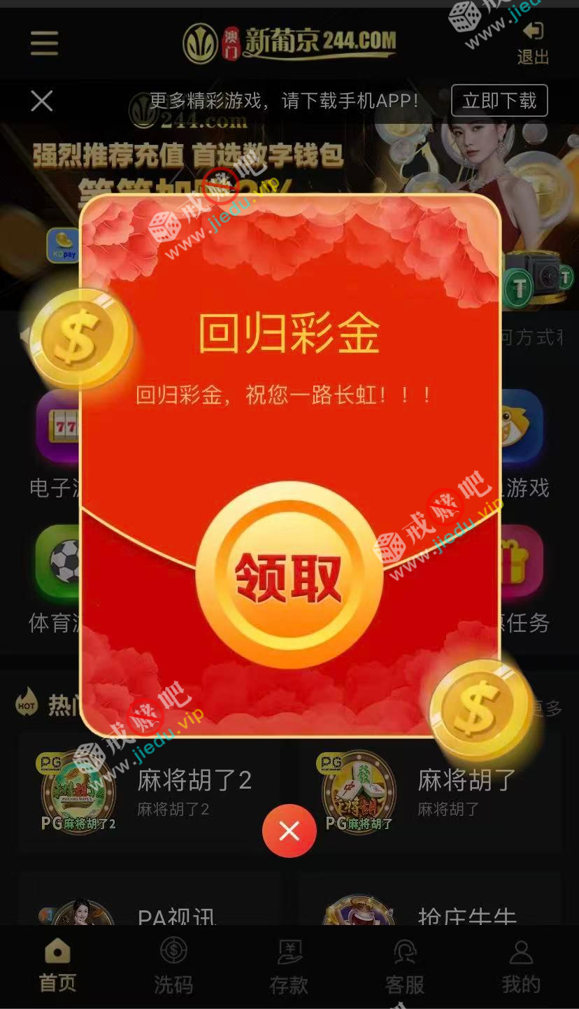 电话回归彩金今天又来了 有号的老哥上去看看 ,我领到了 18。